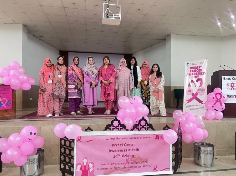 The PG College Wah Cantt celebrated Pink Day with great enthusiasm and spirit to promote awareness about women’s health and the importance of breast cancer prevention. Faculty members and students actively participated, dressed in shades of pink to show solidarity and support for the cause. The college auditorium was beautifully decorated with pink ribbons and balloons, symbolizing hope and strength. Students delivered informative presentations, speeches, and skits highlighting the significance of early detection and self-care. The principal appreciated the efforts of the organizing team and encouraged everyone to adopt a healthy lifestyle. The event concluded with a group photo session, reflecting unity, awareness, and empowerment among the students and staff. The detailed photos can be seen in gallery.