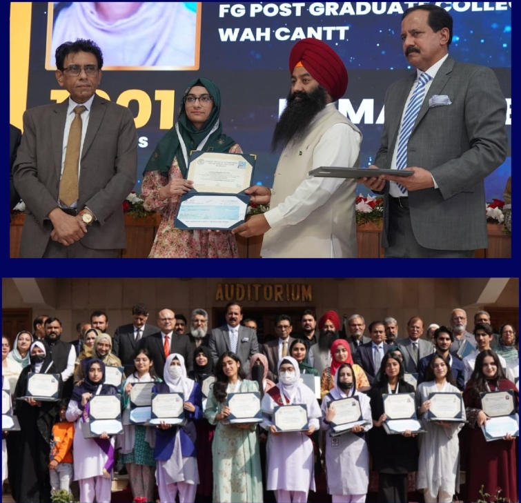 Sajal Bilal, a brilliant student of F.G. Postgraduate College for Women, Wah Cantt, brought immense pride to her institution by securing a distinguished position in the HSSC examination conducted by the Federal Board of Intermediate and Secondary Education (FBISE). In recognition of her outstanding academic achievement, she was awarded a medal, a cash prize, and a laptop by FBISE during a special ceremony organized to honour the board position holders. The management and faculty of PG College Wah Cantt congratulated Sajal Bilal for her remarkable success, acknowledging her dedication, hard work, and commitment to excellence. Her accomplishment not only highlights her personal brilliance but also reflects the college’s consistent efforts toward maintaining high educational standards and academic excellence.